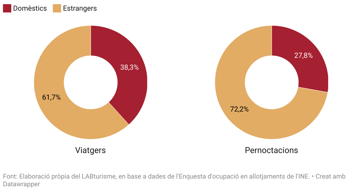 Durant el mes de juliol del 2025 l’Entorn de Barcelona ha acollit el 12,1% dels turistes dels últims dotze mesos, i el percentatge d’obertura dels establiments hotelers ha estat del 98,2%.